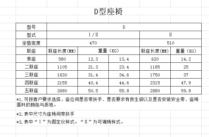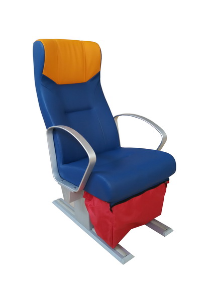 高级船用乘客座椅型号:XJZY-I(适用于高速船舶设计碰撞裁荷为3~12g);XJZY-II(适用于高速船舶设计碰撞裁荷为小于3g)。座椅骨架及椅架采用铝合金型材制作,椅身为阻燃高回弹软质聚氨脂发泡海绵,面料可选用阻燃布、阻燃PU皮革、真皮,靠背可选可调式或固定式。按图纸及要求配置相应铝质地轨、铝质地脚及横梁、安全带、救生衣袋、书袋、小餐板。