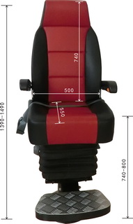 驾驶椅的面料为真皮,内里包裹高回弹软质聚氨酯泡沫塑料。靠背角度可调,扶手、踏板均可向上翻转,座位可前后移动